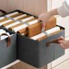 • Good Quality Foldable Cloth Storage Baskets for Shelves, Extra Large Closet Storage Bins with Metal Frame, Fabric Storage Bins, Storage Containers for Organizing, Gray Clothing Bins for Dorm Closet Room.